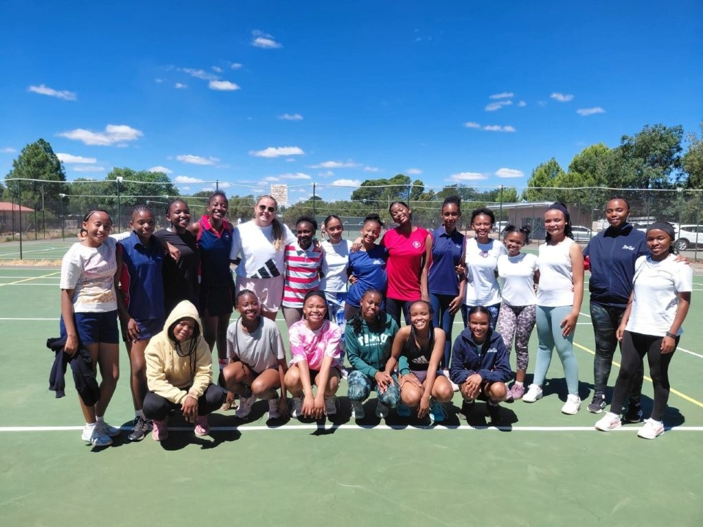 Netbalkliniek saam Mické Engelbrecht.